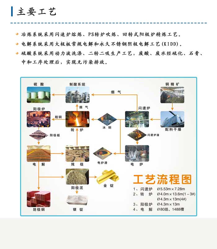 主要工艺Q?/strong>冶炼pȝ采用闪速炉熔炼、PS转炉吹炼、回转式x(chng)炉精炼工艺。电(sh)解系l采用大?..   >>详细信息